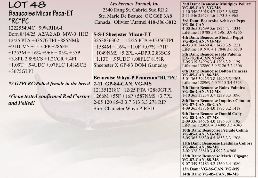 Offering the Genetic Leaders of the Present & Future for Type, Production,