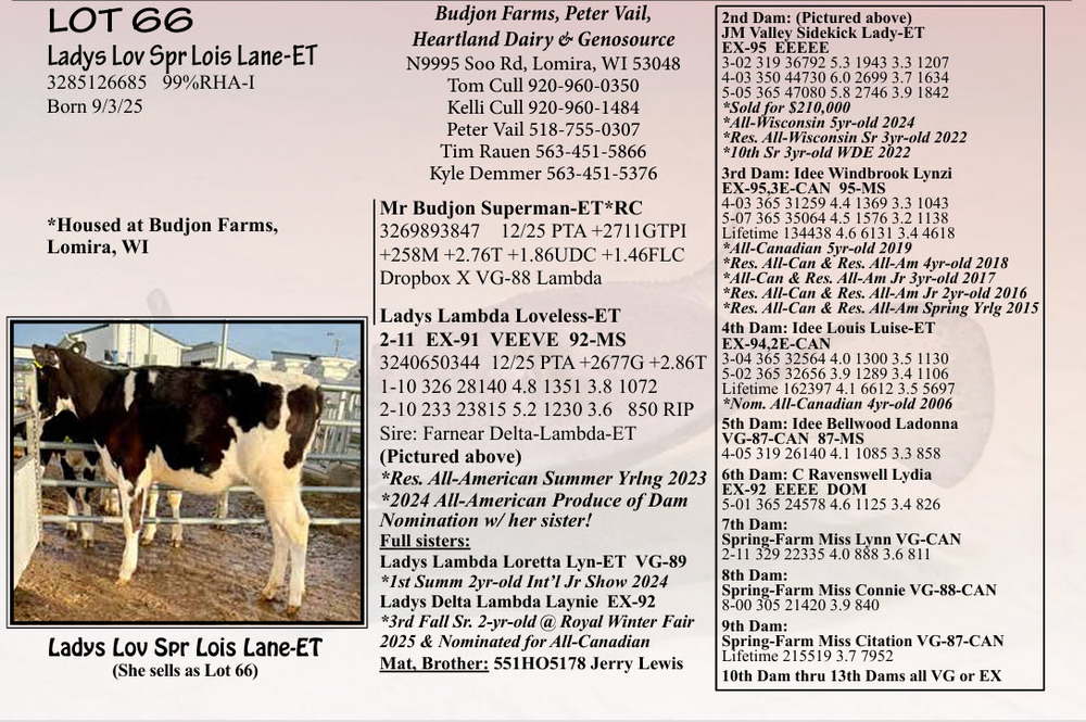 *Housed at Budjon Farms, Lomira, WI