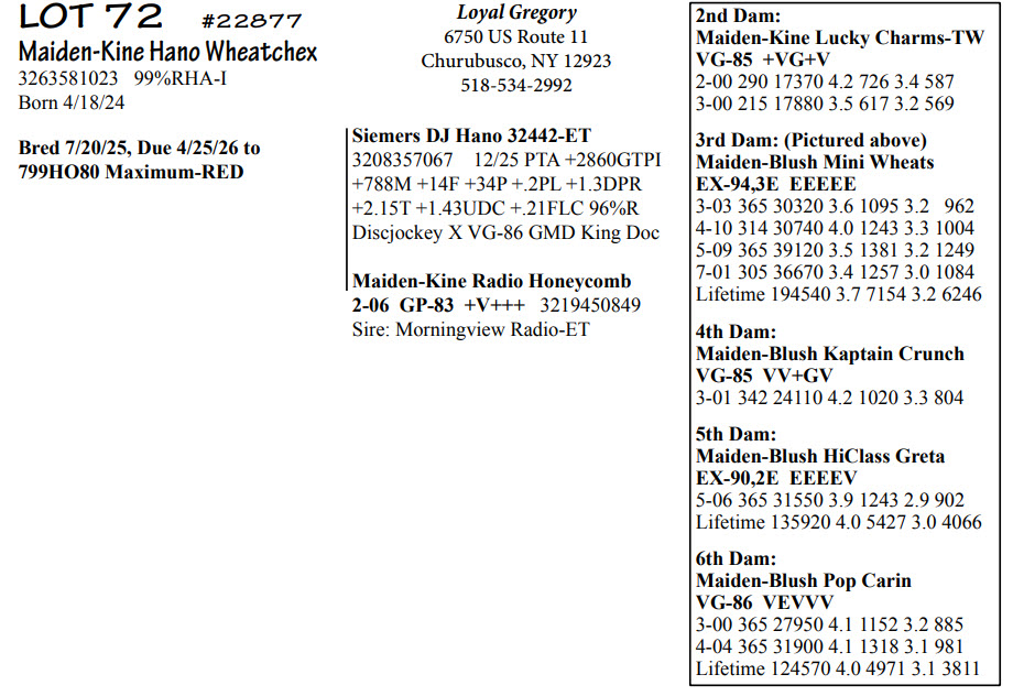 Bred 7/20/25, Due 4/25/26 to