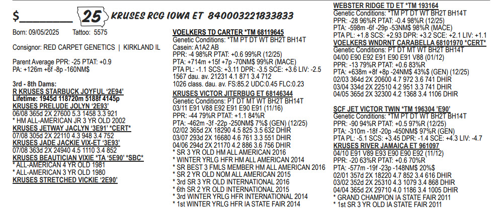 Consignor: RED CARPET GENETICS | KIRKLAND IL