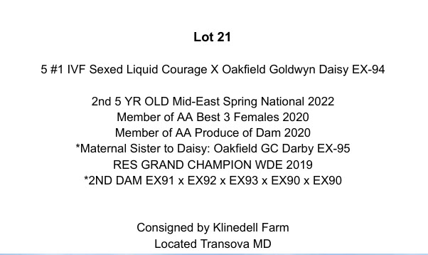 5 #1 IVF Sexed Liquid Courage X Oakfield Goldwyn Daisy EX-94