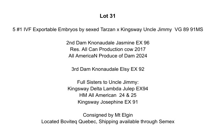 5 #1 IVF Embryos by sexed Tarzan x Kingsway Uncle Jimmy VG 89 91MS