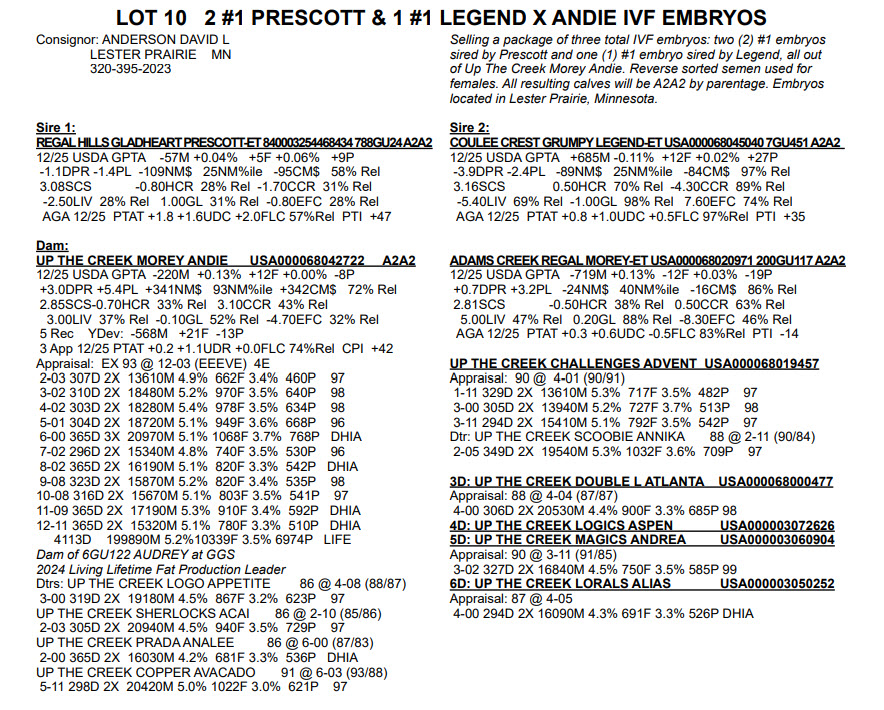 sired by Prescott and one (1) #1 embryo sired by Legend, all out