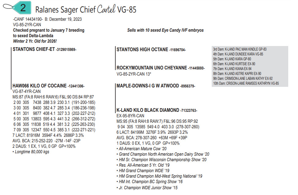 Winter 2 Yr. Old for 2026! Sells with 10 sexed Eye Candy IVF embryos