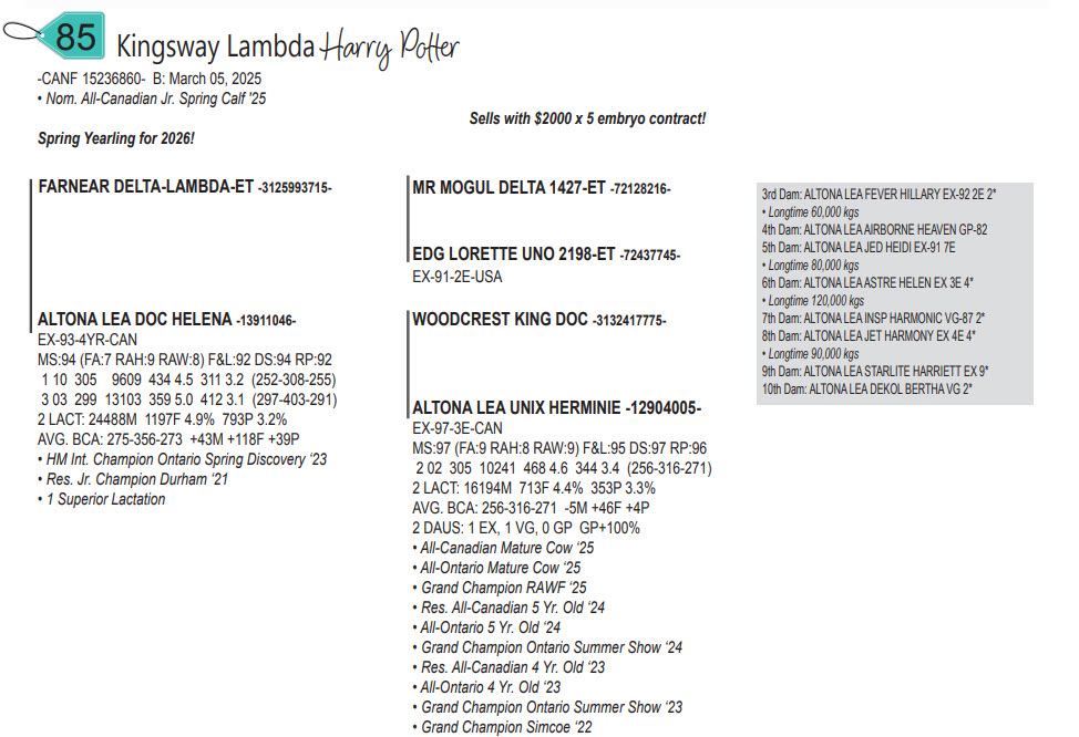• Nom. All-Canadian Jr. Spring Calf '25 Sells with $2000 x 5 embryo contract!