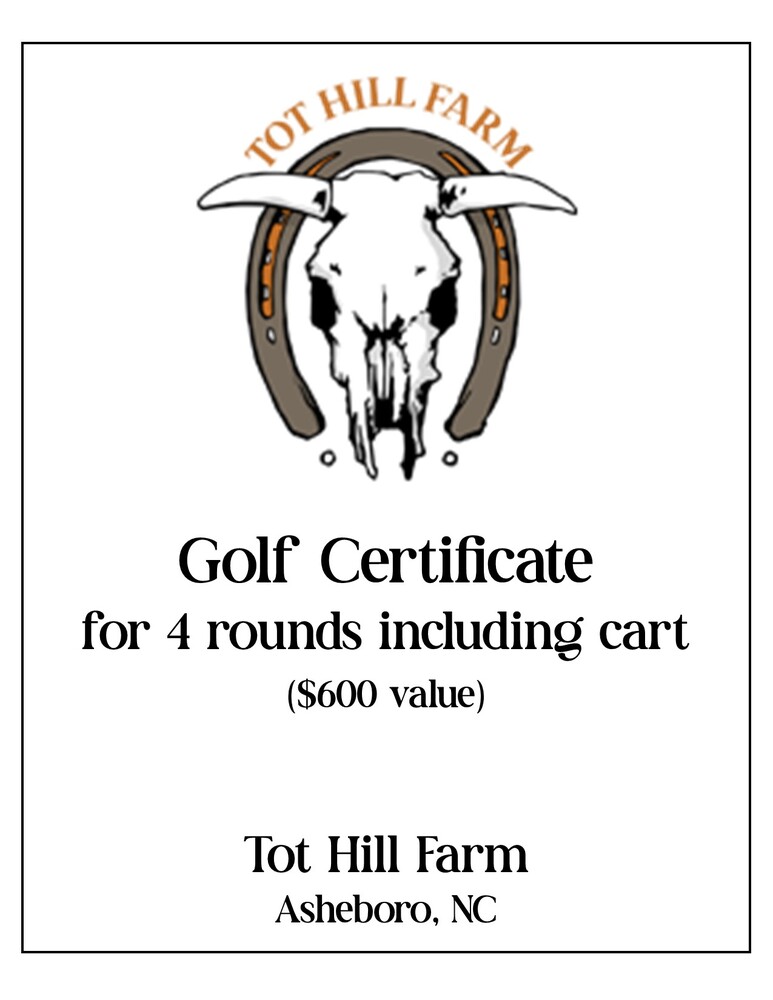 Tot Hill Farm Certificate for 4 rounds including cart - Donated by Tot Hill Farm Asheboro, NC ($600 value)