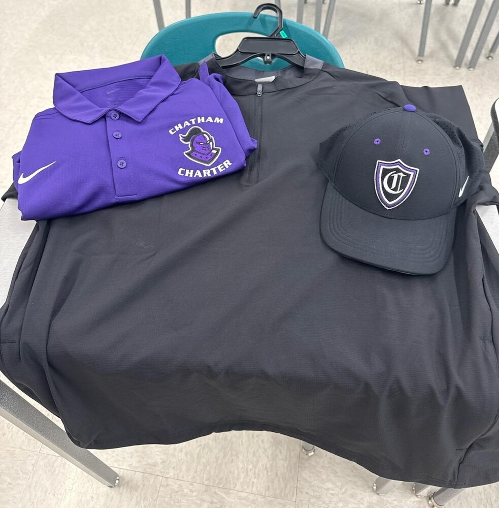 Chatham Charter XL Nike polo and XL Black Russell baseball jacket with Nike hat