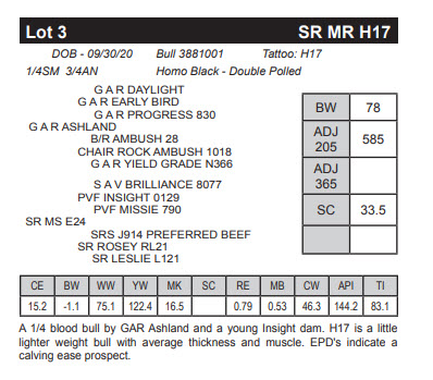 DOB - 09/30/20 Bull 3881001 Tattoo: H17