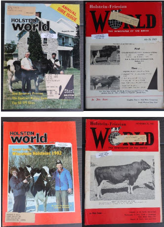 8/25/80 Holstein World, 7/25/65 Holstein World, 4/10/82 Holstein World, 11/25/61 Holstein World, and Dec 1963 PA Holstein News.