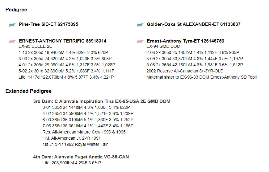 Dam: Arethusa Sid Tess EX-92