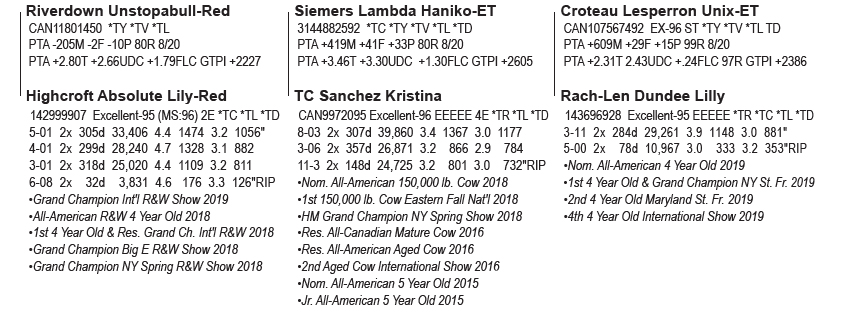 • (2) #2 IVF female embryos Unstoppabull x Lily-Red; (2) #2 IVF female embryos Haniko x Kristina; (2) #2 IVF female embryos Unix X