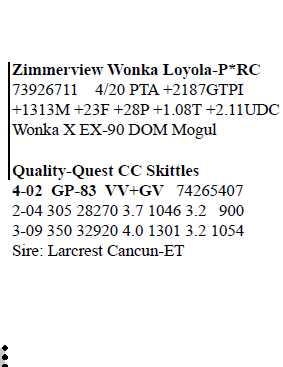 3-00 GP-83 +++++ 3143410916 99%RHA-I Born 8/31/17 2-03 240 23490 3.5 825 2.8 657 RIP Last test- 81 lbs 2.9%F 2.8%P SCC 13,000 Fresh 12/5/19 Bred 4/27/20, Due 2/1/21 to 551HO3855 Moovin*RC