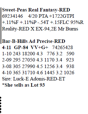 4-11 GP-84 VV+G+ 74265428 100%RHA-NA Born 9/8/15 1-10 243 18200 4.3 776 3.2 590 2-09 295 27050 4.3 1170 3.4 923 3-08 305 27990 4.5 1256 3.4 938 4-10 365 31710 4.6 1445 3.2 1026 Fresh 7/30/20