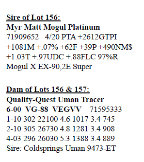 4-02 VG-87 VEVGE 3135480797 99%RHA-NA Born 6/12/16 2-01 365 30148 4.7 1423 3.4 1020 3-06 232 25413 4.1 1050 2.9 741 RIP Last test- 102 lbs 4.2%F 3.0%P SCC 27,000 Fresh 12/13/19 Bred 2/27/20, Due 12/3/20 to 507HO12787 King Royal (sexed)