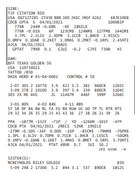 BRED: 10/04/2020 DUE: 07/10/2021 TO