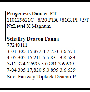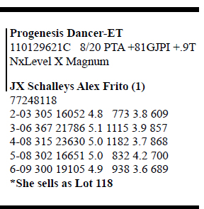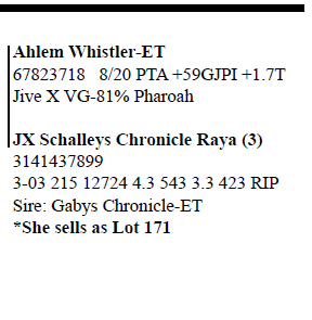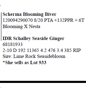 Search Item #: Keyword: Search Catalog Item #: Keyword: 20 items per page 50 items per page 100 items per page Go to page #: 961 , 962 , 963 , 964 , 965 , 966 #1245H – Holstein Schalley Axel Freckles-RED 3206234775 Born 6/27/18 Bred 7/14/20, Due 4/23/21 to 200HO11828 Redeye Location: Online only Auction, Online ., Only More Info / Bid Now Track this Item Sold High Bid: $950.00 #1245H – Holstein Schalley Axel Freckles-RED Sold High Bid: $950 More Details More Info / Bid Track Item 3206234775 Born 6/27/18 Bred 7/14/20, Due 4/23/21 to 200HO11828 Redeye Location: Online only Auction, Online ., Only #1245J – Jersey Schalleys Dancer Olympia (5) 3206254775 Born 3/4/19 Bred 9/8/20, Due 6/18/21 to 7JE01294 Barnabas Location: Online only Auction, Online ., Only More Info / Bid Now Track this Item Sold High Bid: $800.00 #1245J – Jersey Schalleys Dancer Olympia (5) Sold High Bid: $800 More Details More Info / Bid Track Item 3206254775 Born 3/4/19 Bred 9/8/20, Due 6/18/21 to 7JE01294 Barnabas Location: Online only Auction, Online ., Only #1246H – Schalley Mustafa Ella-RED 3206234776 100%RHA-NA Born 7/31/18 Bred 10/19/20 to 94HO00910 Aristocrat-RED Location: Online only Auction, Online ., Only More Info / Bid Now Track this Item Sold High Bid: $725.00 #1246H – Schalley Mustafa Ella-RED Sold High Bid: $725 More Details More Info / Bid Track Item 3206234776 100%RHA-NA Born 7/31/18 Bred 10/19/20 to 94HO00910 Aristocrat-RED Location: Online only Auction, Online ., Only #1246J – Jersey Schalleys Dancer Fara 3206254776 Born 5/4/19 Bred 7/29/20, Due 5/8/21 to 777JE1140 Whistler Location: Online only Auction, Online ., Only More Info / Bid Now Track this Item Sold High Bid: $650.00 #1246J – Jersey Schalleys Dancer Fara Sold High Bid: $650 More Details More Info / Bid Track Item 3206254776 Born 5/4/19 Bred 7/29/20, Due 5/8/21 to 777JE1140 Whistler Location: Online only Auction, Online ., Only #1250 – Jersey Schalleys Promo Flicka-P 3206254780 Born 6/8/19 Bred 9/2/20, Due 6/11/21 to 777JE1140 Whistler Location: Online only Auction, Online ., Only More Info / Bid Now Track this Item Sold High Bid: $500.00 #1250 – Jersey Schalleys Promo Flicka-P Sold High Bid: $500 More Details More Info / Bid Track Item 3206254780 Born 6/8/19 Bred 9/2/20, Due 6/11/21 to 777JE1140 Whistler Location: Online only Auction, Online ., Only #1252 – Jersey Schalleys Promo Pearl 3206254782 Born 8/9/19 Location: Online only Auction, Online ., Only More Info / Bid Now Track this Item Sold High Bid: $400.00 #1252 – Jersey Schalleys Promo Pearl Sold High Bid: $400 More Details More Info / Bid Track Item 3206254782 Born 8/9/19 Location: Online only Auction, Online ., Only #1253 – Jersey Schalleys Dancer Faith 3206254783 Born 8/14/19 Location: Online only Auction, Online ., Only More Info / Bid Now Track this Item Sold High Bid: $500.00 #1253 – Jersey Schalleys Dancer Faith Sold High Bid: $500 More Details More Info / Bid Track Item 3206254783 Born 8/14/19 Location: Online only Auction, Online ., Only #1254 – Jersey Schalleys Barnabis Dot-TW (3) 3206254784 Born 9/29/19 Location: Online only Auction, Online ., Only More Info / Bid Now Track this Item Sold High Bid: $300.00 – #1016 #1254 – Jersey Schalleys Barnabis Dot-TW (3) Sold High Bid: $300 More Details More Info / Bid Track Item 3206254784 Born 9/29/19 Location: Online only Auction, Online ., Only #1255 – Jersey Schalleys Barnabis Dip-TW (3) 3206254785 Born 9/29/19 Location: Online only Auction, Online ., Only More Info / Bid Now Track this Item Sold High Bid: $350.00 #1255 – Jersey Schalleys Barnabis Dip-TW (3) Sold High Bid: $350 More Details More Info / Bid Track Item 3206254785 Born 9/29/19 Location: Online only Auction, Online ., Only #1256 – Jersey JX Schalleys Dancer Felicity (2) 3206254786 Born 11/2/19 Location: Online only Auction, Online ., Only More Info / Bid Now Track this Item Sold High Bid: $400.00 – #1024 #1256 – Jersey JX Schalleys Dancer Felicity (2) Sold High Bid: $400 More Details More Info / Bid Track Item 3206254786 Born 11/2/19 Location: Online only Auction, Online ., Only #1257 – Jersey Schalleys Banabis Prancer 3206254787 Born 12/28/19 Location: Online only Auction, Online ., Only More Info / Bid Now Track this Item Sold High Bid: $500.00 #1257 – Jersey Schalleys Banabis Prancer Sold High Bid: $500 More Details More Info / Bid Track Item 3206254787 Born 12/28/19 Location: Online only Auction, Online ., Only #1258 – Jersey JX Schalleys Whistler Raquel (4) 3206254788 Born 4/3/20 Location: Online only Auction, Online ., Only More Info / Bid Now Track this Item Sold High Bid: $400.00 #1258 – Jersey JX Schalleys Whistler Raquel (4) Sold High Bid: $400 More Details More Info / Bid Track Item 3206254788 Born 4/3/20 Location: Online only Auction, Online ., Only #1259 – Jersey Schalleys Reviresco Ritz 3206254789 Born 6/14/20 Location: Online only Auction, Online ., Only More Info / Bid Now Track this Item Sold High Bid: $475.00 – #1002 #1259 – Jersey Schalleys Reviresco Ritz Sold High Bid: $475 More Details More Info / Bid Track Item 3206254789 Born 6/14/20 Location: Online only Auction, Online ., Only #1260 – Brown Swiss IE Schalleys Biver Giana 3206234790 Tattoo KC1260 Born 9/30/19 Location: Online only Auction, Online ., Only More Info / Bid Now Track this Item Sold High Bid: $800.00 #1260 – Brown Swiss IE Schalleys Biver Giana Sold High Bid: $800 More Details More Info / Bid Track Item 3206234790 Tattoo KC1260 Born 9/30/19 Location: Online only Auction, Online ., Only #1261 – Brown Swiss Schalleys Wonder Apple 3206234791 Tattoo KC1261 Born 5/11/19 Location: Online only Auction, Online ., Only More Info / Bid Now Track this Item Sold High Bid: $700.00 #1261 – Brown Swiss Schalleys Wonder Apple Sold High Bid: $700 More Details More Info / Bid Track Item 3206234791 Tattoo KC1261 Born 5/11/19 Location: Online only Auction, Online ., Only #1262 – Jersey Schalleys Thor Fawn 3206254792 Born 11/9/17 Bred 7/20/2