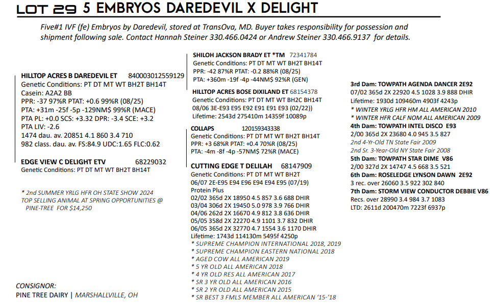 Five#1 IVF (fe) Embryos by Daredevil, stored at TransOva, MD. Buyer takes responsibility for possession and