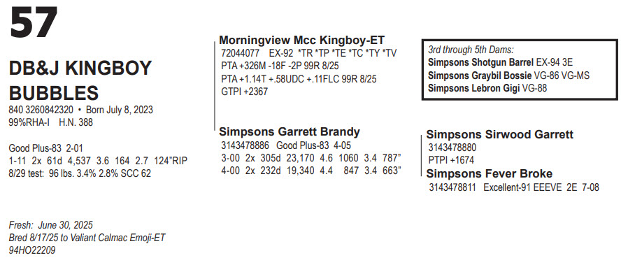 8/29 test: 96 lbs. 3.4% 2.8% SCC 62