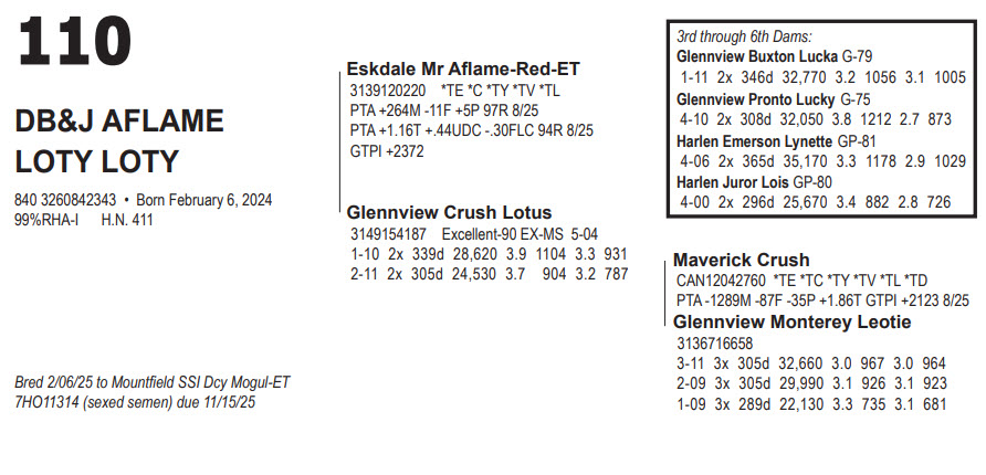 7HO11314 (sexed semen) due 11/15/25