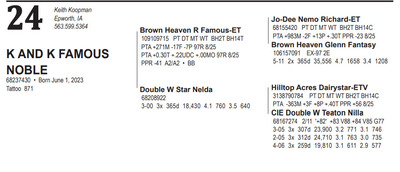DNA has been submitted for sire determination. Sire is either Hilltop Acres Dynamite Diego-ET or V B Biver Phan