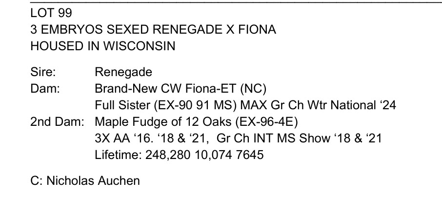 3 EMBRYOS SEXED RENEGADE X FIONA