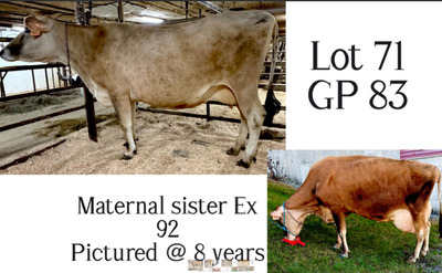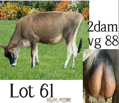 Postcards from Vermont Fall Sale 175 South Main Street , Rutland VT, 05701 Selling All Breeds Contact Agent: Katie Shultz 717-543-7883 Catalog | Terms of Auction Download CATALOG Catalog | Terms Download CATALOG All Items (110) No Category (110) Categories All Items (110) No Category (110) Search Item #: Keyword: Search Catalog Item #: Keyword: 20 items per page 50 items per page 100 items per page Go to page #: 1 , 2 , 3 , 4 , 5 , 6 #61 – JFT-GENETICS SOMETHING SPECIAL 9/7/2024 Location: 175 South Main Street , Rutland VT, 05701 Contact Agent: Katie Shultz 717-543-7883 More Info / Bid Now Track this Item Sold High Bid: $700.00 – #165 #61 – JFT-GENETICS SOMETHING SPECIAL Sold High Bid: $700 More Details More Info / Bid Track Item 9/7/2024 Location: 175 South Main Street , Rutland VT, 05701 Contact Agent: Katie Shultz 717-543-7883 #62 – WILSONDALE CHROME BELLE (EX-90) 3/29/20 DUE 5/14/26 TO MR SWAGGER - 305 PROJ 20,580 Location: 175 South Main Street , Rutland VT, 05701 Contact Agent: Katie Shultz 717-543-7883 More Info / Bid Now Track this Item Sold High Bid: $1,500.00 – #165 #62 – WILSONDALE CHROME BELLE (EX-90) Sold High Bid: $1,500 More Details More Info / Bid Track Item 3/29/20 DUE 5/14/26 TO MR SWAGGER - 305 PROJ 20,580 Location: 175 South Main Street , Rutland VT, 05701 Contact Agent: Katie Shultz 717-543-7883 #63 – JX BLACKRIDGE OVERALLS OHYEAH (5) 6/10/2024 Location: 175 South Main Street , Rutland VT, 05701 Contact Agent: Katie Shultz 717-543-7883 More Info / Bid Now Track this Item Sold High Bid: $650.00 – #165 #63 – JX BLACKRIDGE OVERALLS OHYEAH (5) Sold High Bid: $650 More Details More Info / Bid Track Item 6/10/2024 Location: 175 South Main Street , Rutland VT, 05701 Contact Agent: Katie Shultz 717-543-7883 #64 – JX BLACKRIDGE VICTORIOUS ZILCH (3) 6/2/2024 SERVICED 9/29 TO BIG RED Location: 175 South Main Street , Rutland VT, 05701 Contact Agent: Katie Shultz 717-543-7883 More Info / Bid Now Track this Item No Bids Starting at $1,000.00 Login to Bid #64 – JX BLACKRIDGE VICTORIOUS ZILCH (3) Starting at $1,000.00 Login to Bid More Details More Info / Bid Track Item 6/2/2024 SERVICED 9/29 TO BIG RED Location: 175 South Main Street , Rutland VT, 05701 Contact Agent: Katie Shultz 717-543-7883 #65 – JX BLACKRIDGE KAMAZI EEL (6) 4/19/2025 Location: 175 South Main Street , Rutland VT, 05701 Contact Agent: Katie Shultz 717-543-7883 More Info / Bid Now Track this Item Sold High Bid: $600.00 – #154 #65 – JX BLACKRIDGE KAMAZI EEL (6) Sold High Bid: $600 More Details More Info / Bid Track Item 4/19/2025 Location: 175 South Main Street , Rutland VT, 05701 Contact Agent: Katie Shultz 717-543-7883 #66 – JX BLACKRIDGE VICTORIOUS ENOUGH (6) 1/26/24 SERVICED 8/18/25 TO SALSA-P Location: 175 South Main Street , Rutland VT, 05701 Contact Agent: Katie Shultz 717-543-7883 More Info / Bid Now Track this Item Sold High Bid: $1,250.00 – #500 #66 – JX BLACKRIDGE VICTORIOUS ENOUGH (6) Sold High Bid: $1,250 More Details More Info / Bid Track Item 1/26/24 SERVICED 8/18/25 TO SALSA-P Location: 175 South Main Street , Rutland VT, 05701 Contact Agent: Katie Shultz 717-543-7883 #67 – HOYT HILL AUGUST’S ARTIC 1/22/2024 DUE 3/19/26 TO ENSIGN Location: 175 South Main Street , Rutland VT, 05701 Contact Agent: Katie Shultz 717-543-7883 More Info / Bid Now Track this Item Sold High Bid: $1,600.00 – #1015 #67 – HOYT HILL AUGUST’S ARTIC Sold High Bid: $1,600 More Details More Info / Bid Track Item 1/22/2024 DUE 3/19/26 TO ENSIGN Location: 175 South Main Street , Rutland VT, 05701 Contact Agent: Katie Shultz 717-543-7883 #68 – HOYT HILL FARM RIZZLE’S RAIN (5) 1/9/2025 PTA MILK +1042 Location: 175 South Main Street , Rutland VT, 05701 Contact Agent: Katie Shultz 717-543-7883 More Info / Bid Now Track this Item Sold High Bid: $2,100.00 – #120 #68 – HOYT HILL FARM RIZZLE’S RAIN (5) Sold High Bid: $2,100 More Details More Info / Bid Track Item 1/9/2025 PTA MILK +1042 Location: 175 South Main Street , Rutland VT, 05701 Contact Agent: Katie Shultz 717-543-7883 #69 – JX GRAFCO KAMAKAZI NORMA (5) 5/14/24 PREGNANT & DUE 3/6/26 TO ODESZA SEXED 507JE229 Location: 175 South Main Street , Rutland VT, 05701 Contact Agent: Katie Shultz 717-543-7883 More Info / Bid Now Track this Item Sold High Bid: $1,300.00 – #500 #69 – JX GRAFCO KAMAKAZI NORMA (5) Sold High Bid: $1,300 More Details More Info / Bid Track Item 5/14/24 PREGNANT & DUE 3/6/26 TO ODESZA SEXED 507JE229 Location: 175 South Main Street , Rutland VT, 05701 Contact Agent: Katie Shultz 717-543-7883 #70 – GRAFCO CHIEF KELLY (VG-87) 1/14/22 DRY & DUE 11/13/25 TO COLLEGE SEXED 507JE2221 2-10 295 18,470 5.4 997 3.7 688 Location: 175 South Main Street , Rutland VT, 05701 Contact Agent: Katie Shultz 717-543-7883 More Info / Bid Now Track this Item Sold High Bid: $2,150.00 – #1012 #70 – GRAFCO CHIEF KELLY (VG-87) Sold High Bid: $2,150 More Details More Info / Bid Track Item 1/14/22 DRY & DUE 11/13/25 TO COLLEGE SEXED 507JE2221 2-10 295 18,470 5.4 997 3.7 688 Location: 175 South Main Street , Rutland VT, 05701 Contact Agent: Katie Shultz 717-543-7883 #71 – GRAFCO CRAZE KIARA (6) (VG-83) 6/1/21 DRY & DUE 11/8/25 TO KAMAKAZI 75JE1980 3-05 305 18,960 4.8 901 3.5 663 Location: 175 South Main Street , Rutland VT, 05701 Contact Agent: Katie Shultz 717-543-7883 More Info / Bid Now Track this Item Sold High Bid: $1,700.00 – #126 #71 – GRAFCO CRAZE KIARA (6) (VG-83) Sold High Bid: $1,700 More Details More Info / Bid Track Item 6/1/21 DRY & DUE 11/8/25 TO KAMAKAZI 75JE1980 3-05 305 18,960 4.8 901 3.5 663 Location: 175 South Main Street , Rutland VT, 05701 Contact Agent: Katie Shultz 717-543-7883 #72 – GRAFCO OVERALLS KALI 7/18/24 BRED 8/27 TO MATEO SEXED 507JE2229 DUE 6/2/26 Location: 175 South Main Street , Rutland VT, 05701 Contact Agent: Katie Shultz 717-543-7883 More Info / Bid Now Track this Item Sold High Bid: $1,250.00 – #500 #72 – GRAFCO OVERALLS KALI Sold High Bid: $1,250 More Details More Info / Bid Track 