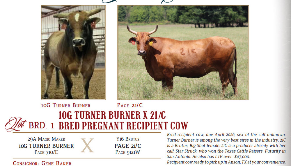 Bred recipient cow, due April 2026, sex of the calf unknown.