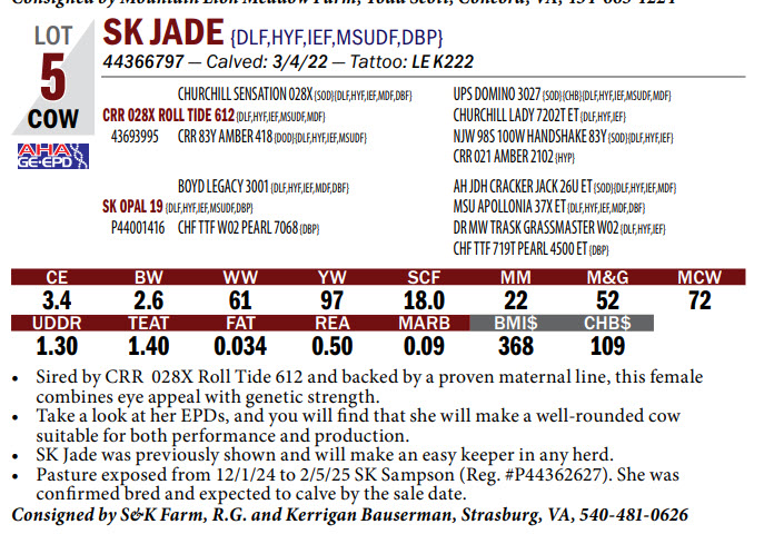 SK Jade was previously shown and will make an easy keeper in any herd.