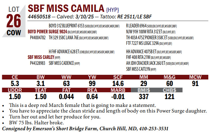 44650518 — Calved: 3/10/25 — Tattoo: RE 2511/LE SBF This is a deep red March female that is going to make a statement.