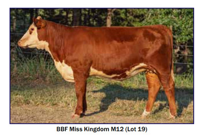 44611303 — Calved: 9/18/24 — Tattoo: RE BBF/LE M12 This Kingdom daughter is out of a first calf heifer. She is very gentle and has performed well. Pre-breeding vaccinations will be done prior to sale and open ready to breed. BW 62 lbs., WW 563 lbs., YW 854 lbs.