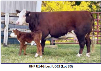 44293829 — Calved: 5/10/21 — Tattoo: LE U02J Lexi is a high volume, freckle-faced, deep cherry red young cow that does an exceptional job in raising a calf. Sells with a sporty heifer calf (Reg. #P44691626), born 9/1/25, sired by UHF 10B Powerhouse U06L. He was a 3-time National Class Winner and Dvision Champion at the NAILE in 2023. Halter broke and sells open. Watch for updates on Facebook as the sale approaches