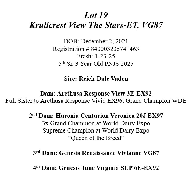 Full Sister to Arethusa Response Vivid EX96, Grand Champion WDE
