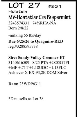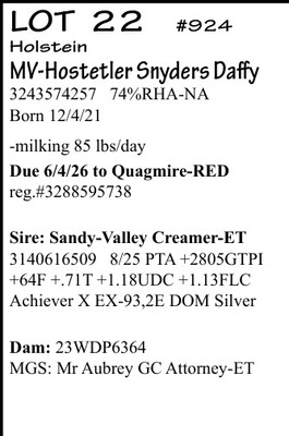 Hostetler Dairy Dispersal and Kish Monthly Dairy Sale
