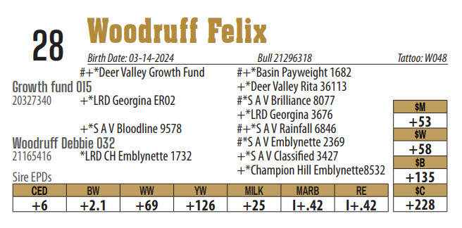 Birth Date: 03-14-2024 Bull 21296318 Tattoo: W048