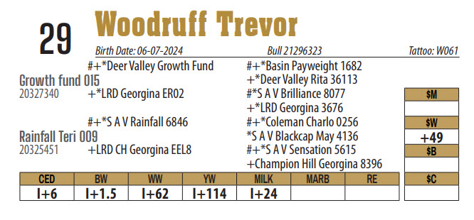 Birth Date: 06-07-2024 Bull 21296323 Tattoo: W061