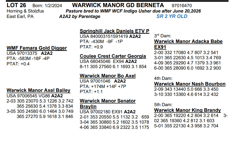 Born: 1/2/2024 Pasture bred to WMF WCF Indigo Usher due after June 20,2026