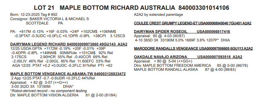 Born: 12-23-2025 Tag # 892 A2A2 by extended parentage