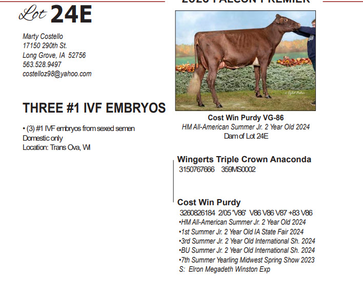 UW-River Falls Falcon Premier ONLINE Embryo Sale