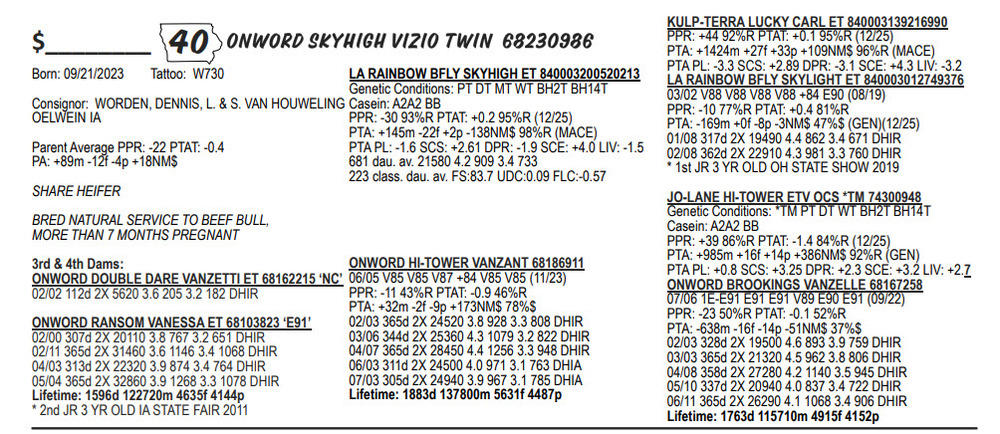 Consignor: WORDEN, DENNIS, L. & S. VAN HOUWELING