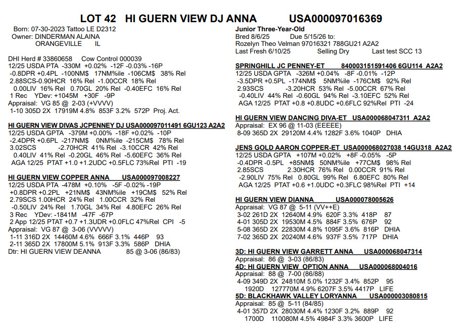 Bred 8/6/25 Due 5/15/26 to: Rozelyn Theo Velman 97016321 788GU21 A2A2 Last Fresh 6/10/25 Selling Dry Last test SCC 13