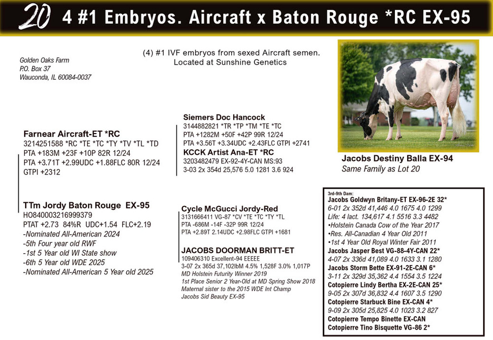 (4) #1 IVF embryos from sexed Aircraft semen.