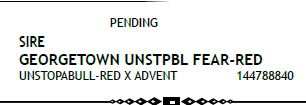 born ? 09/03/2018 PTPI +1788 DUE 12/30/20 to Georgetown Unstpbl Fear-Red 144788840