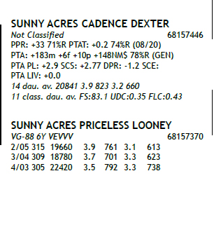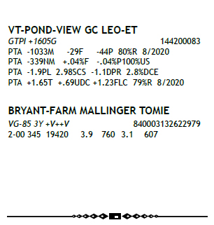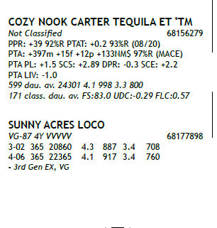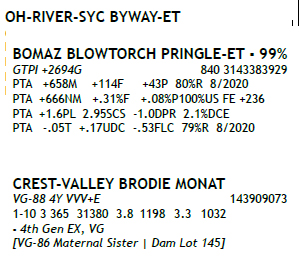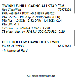 born ? 01/04/2020 PTPI +2485 ? Potential 5th Gen EX, VG Winter Calf PTA +934M +73F +39P 40%R 8/20 PTA +1.8PL 3.09SCS -1.6DPR 2.4%DCE PTA +.41T +.30UDC -.21FLC 40%R 8/20 PTA +162FE -1.1FI 1.8%SCE