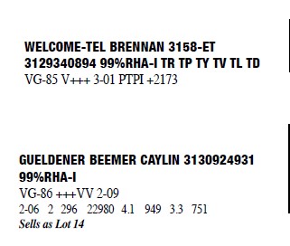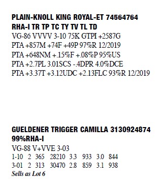 3130924931 99%RHA-I Born: April 10, 2016 #2335 VG-86 +++VV 2-09 2-06 2 296 22980 4.1 949 3.3 751 3-06 2 78 7628 4.7 359 3.4 259 (RIP) Milking 100lbs. SCC 348 Sells Fresh 11/2/2019