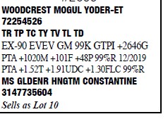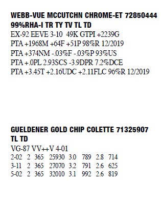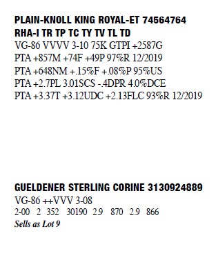 3130924889 Born: December 1, 2015 #2293 VG-86 ++VVVV 3-08 2-00 2 352 30190 2.9 870 2.9 866 3-01 2 358 30332 2.6 801 2.9 887 Bred 8/1/2019 to Avant-Garde Subban-ET 3145066229 250H14503