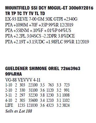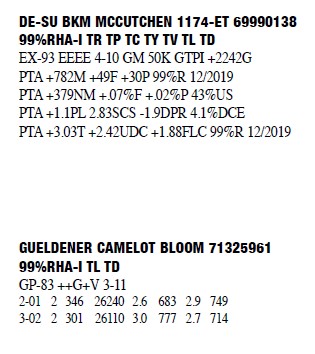 3147735588 99%RHA Born: October 18, 2017 #2477 2-01 2 36 2139 4.3 92 3.5 74 (RIP) Milking 68lbs. SCC 18 Sells Fresh 12/14/2019