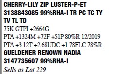 3130924893 100%RHA Born: December 29, 2015 #2297 VG-85 +V+V+ 3-01 1-11 2 293 26250 3.4 895 2.9 774 2-11 2 305 31670 2.9 906 2.9 914 Sells Fresh 1/30/2020