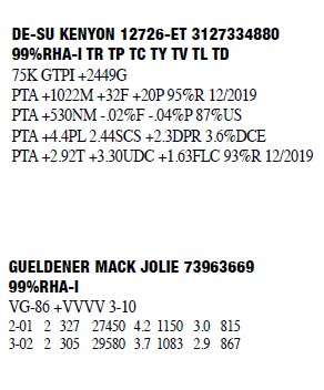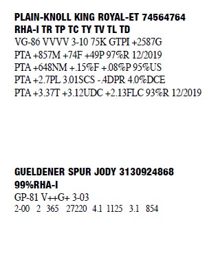 3147735591 100%RHA Born: November 2, 2017 #2480 2-01 2 26 1552 5.6 87 3.7 57 (RIP) Miolking 72lbs. SCC 14 Sells Fresh 12/24/2019