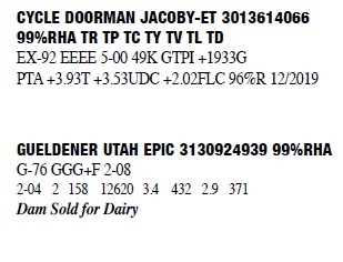 3140804880 99%RHA-I Born: November 3, 2016 #2380 GP-83 +V+++ 2-09 2-01 2 305 26540 3.7 977 3.0 798 3-02 2 12 902 6.1 55 3.5 32 (RIP) Milking 95lbs. SCC 27 Sells Fresh 1/7/2020
