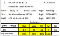 P Charolais Born: 5/18/19 Tattoo: 8113 Reg# Pending